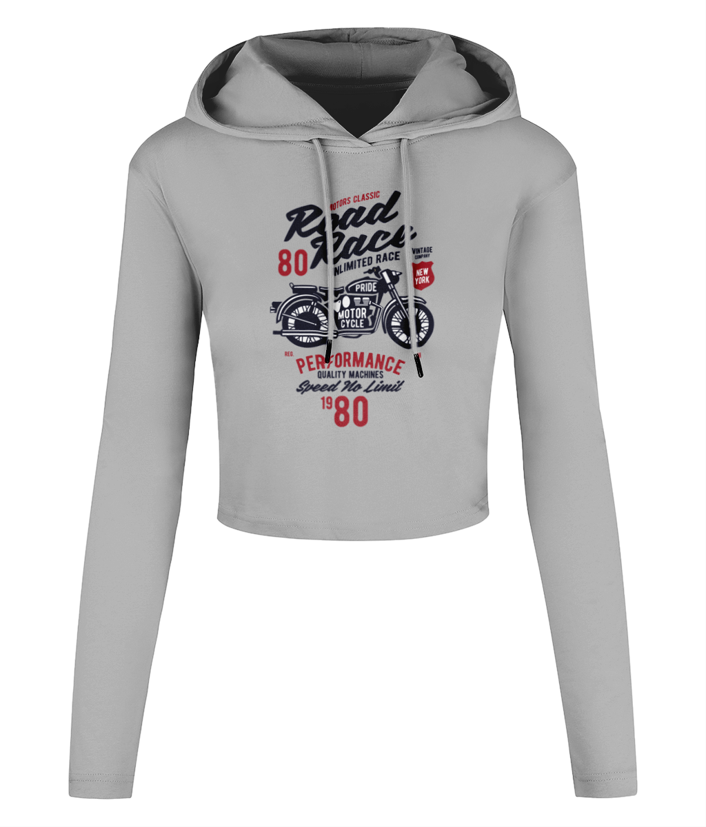 Road Race Motorcycle - Women's Cropped Hooded T-shirt